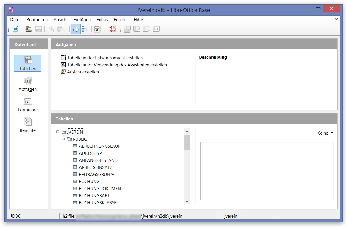 Wichtig! Beim Zugriff mit LibreOffice Base auf die JVerein-Datenbank muss JVerein geschlossen sein.
