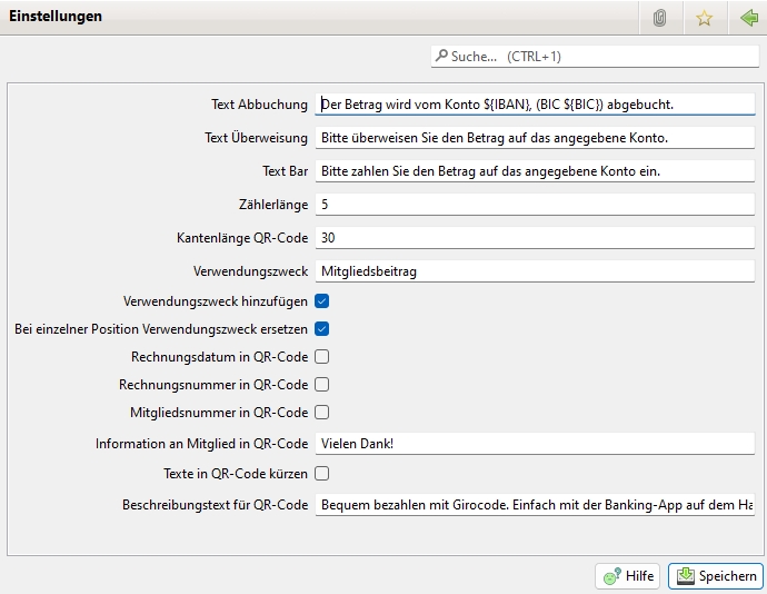 Es ist möglich einen QR Code mit den Rechnungsdaten auf die Rechnung zu platzieren. Dazu sind die entsprechenden Felder zu konfigurieren.