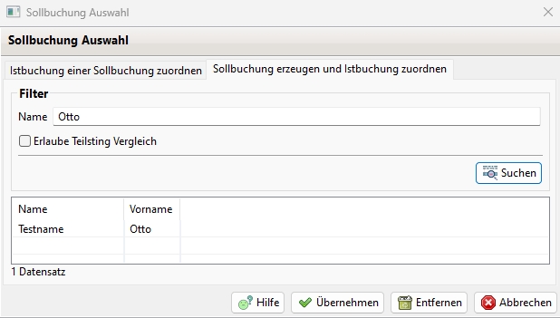 Durch einen Klick auf auf den Menüeintrag "Sollbuchung zuordnen" öffnet sich folgender Dialog: