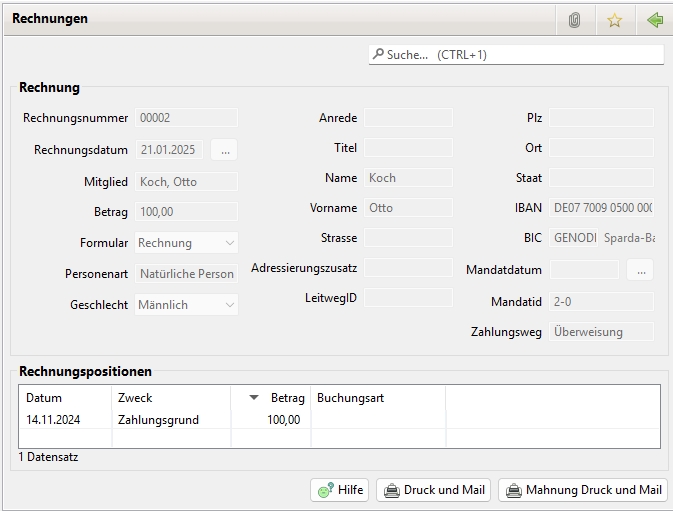Mitglied anzeigen: Öffnet das Mitglied zur Rechnung