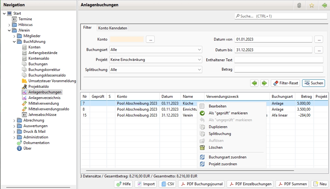 Anlagenbuchungen