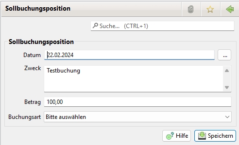 Über diesen Dialog wird eine Sollbuchung und eine zugeordnete Sollbuchungsposition erzeugt.