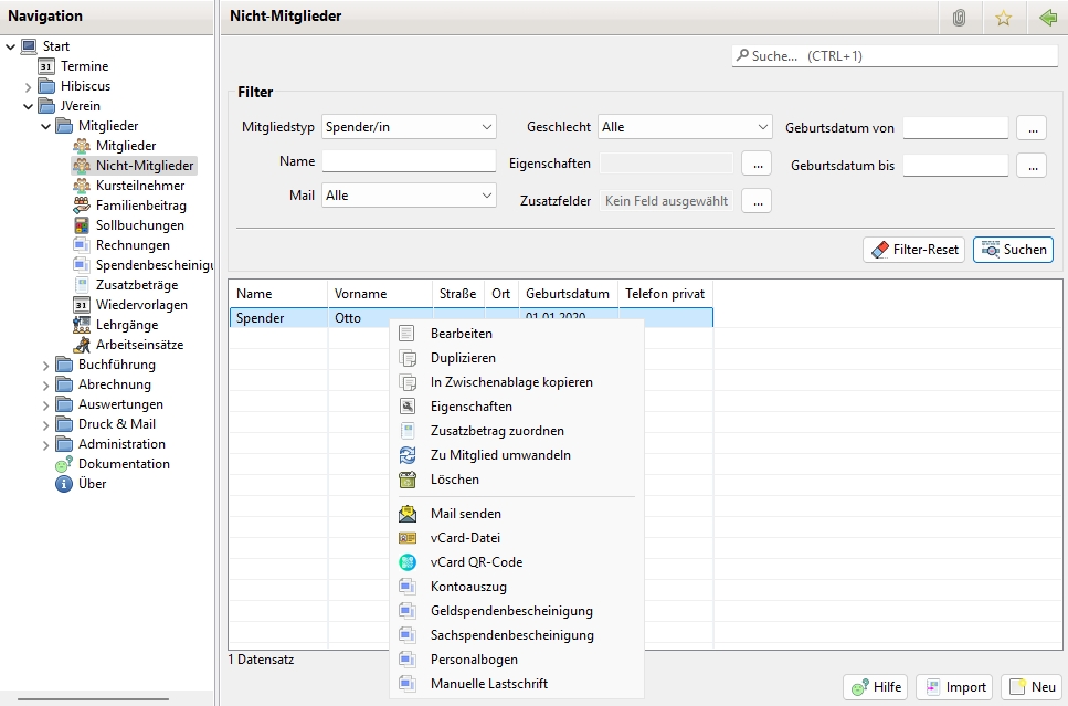 Anschließend sollte JVerein neu gestartet werden, damit der Menüpunkt "Nicht-Mitglieder" zur Verfügung steht.
