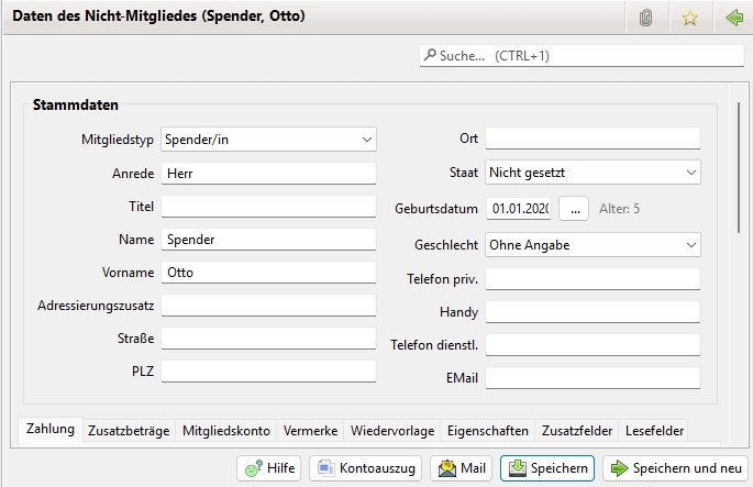 Neben den Mitgliedern können Spender/innen und weitere Nicht-Mitglieder gespeichert werden.