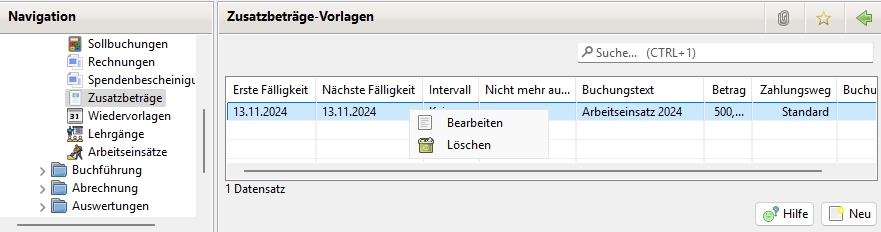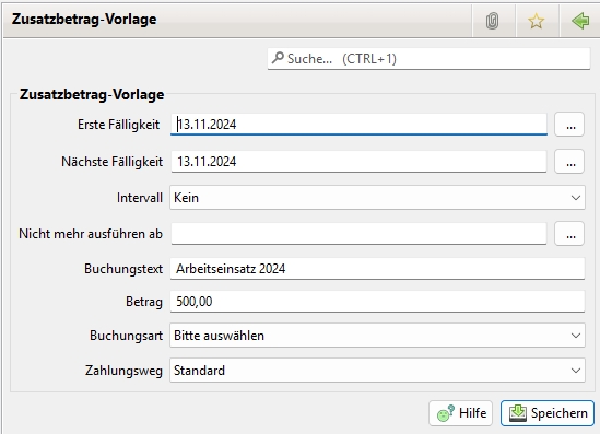 beim Anlegen eines Zusatzbetrags beim Mitglied (siehe Zusatzbeträge)