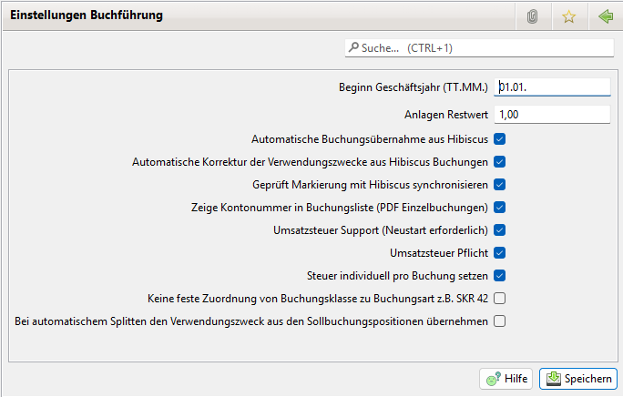 Auswahl ob die Steuer über die Buchungsart gesetzt wird oder individuell per Buchung. Diese Option ist nur verfügbar wenn auch Umsatzsteuer Support aktiviert ist