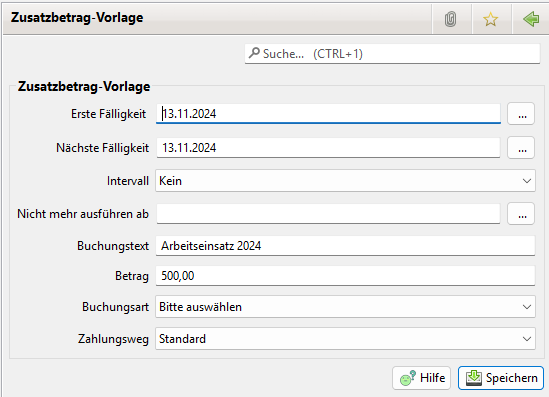 beim Anlegen eines Zusatzbetrags beim Mitglied (siehe Zusatzbeträge)