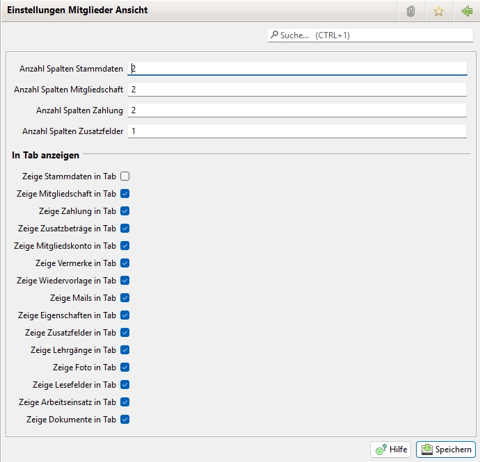 Es kann ausgewählt werden welche Daten direkt angezeigt werden oder innerhalb der Tabs.