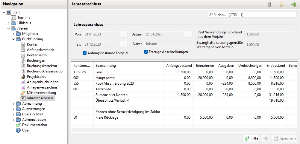 Der Jahresabschluss zeigt den Zeitraum des Jahresabschlusses an. Es ist das Geschäftsjahr nach dem letzten Abschluss.