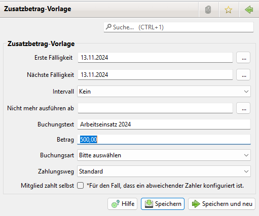 beim Anlegen eines Zusatzbetrags beim Mitglied (siehe Zusatzbeträge)