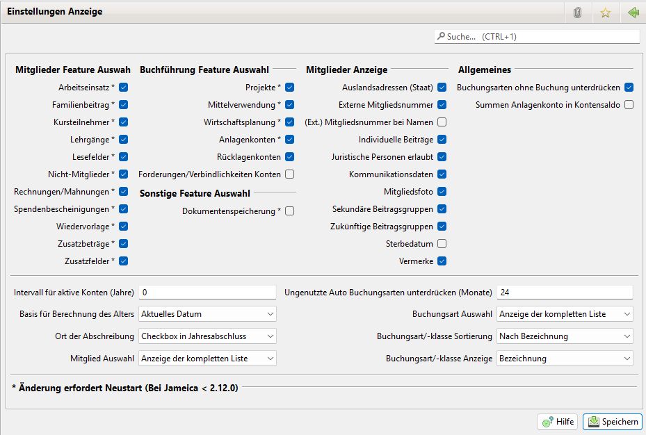 Nach Änderungen der mit Stern gekennzeichneten Werte ist ein Neustart von Jameica erforderlich.