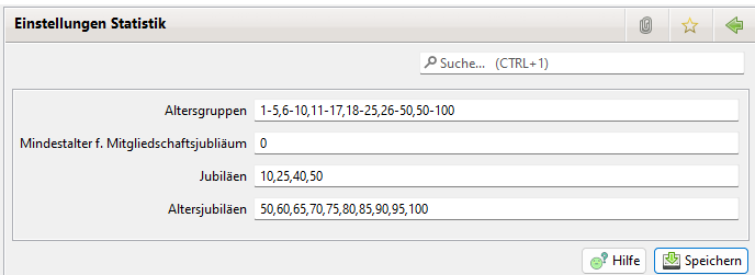 Für statistische Zwecke können Altersgruppen angegeben werden. Erfassen Sie die Gruppen wie im folgendem Beispiel