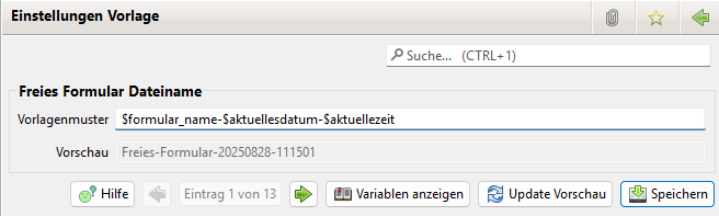 Über den "Update Vorschau" Button kann nach einer Änderung des Vorlagenmusters die Vorschau neu berechnet werden.