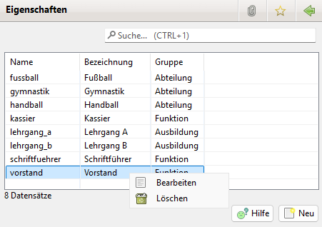 Die Eigenschaften werden unter Administration->Eigenschaften bearbeitet.