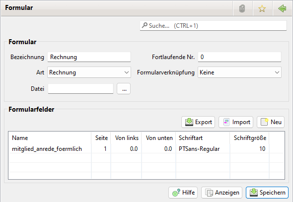 Mit dem Button Importieren können vorher exportierte Formulare importiert werden.