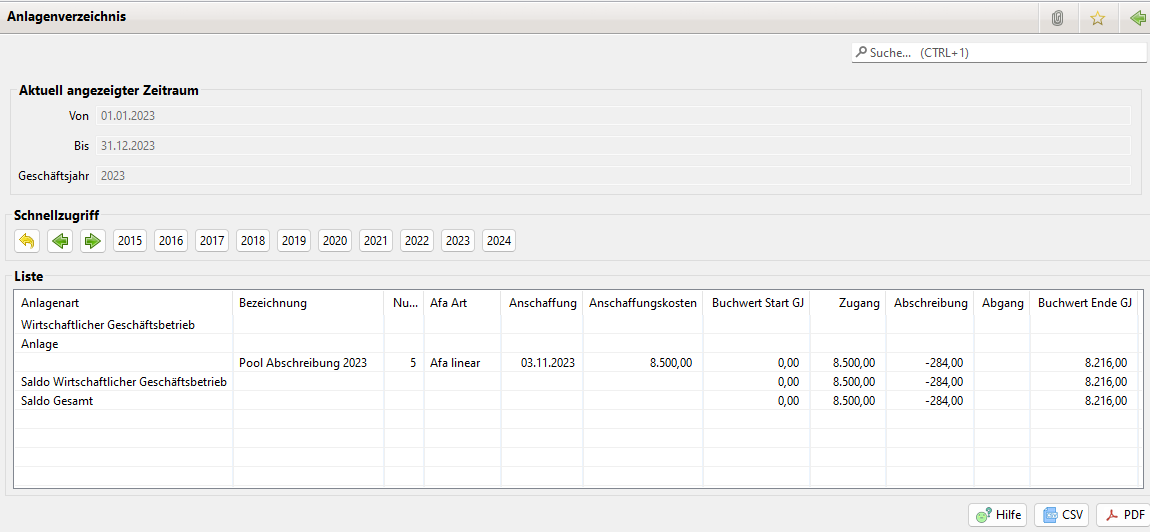 Das bedeutet auch, dass in der Tabelle der Buchwert für das Ende des Geschäftsjahres erst nach dem Jahresabschluss angezeigt wird.