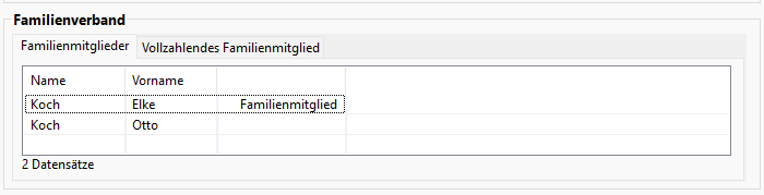 Im Tab "Familienmitglieder" werden die Personen angezeigt, die am Familienverband beteiligt sind.