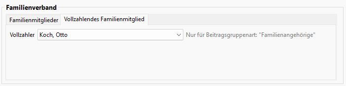 Die Person (ebenfalls ein Mitglied), die im Familienverband den vollen Beitrag zahlt, kann im Tab "Vollzahlendes Familienmitglied" aus einer Liste ausgewählt werden.