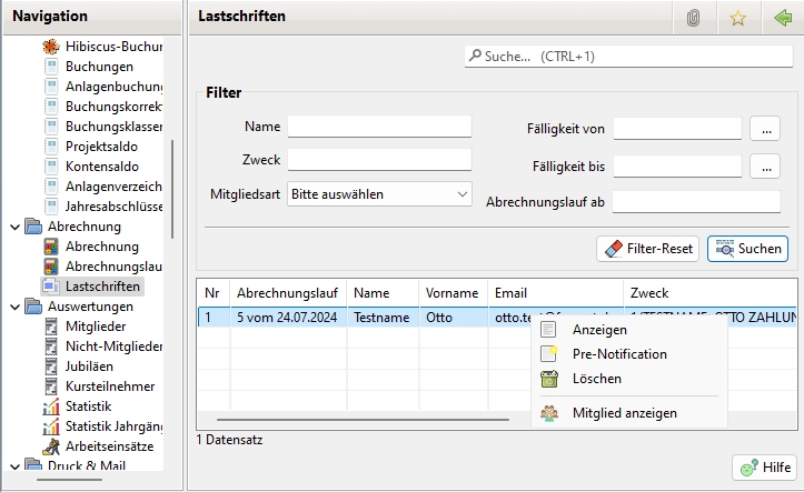 Lastschrift Einträge werden automatisch gelöscht wenn man den zugehörigen Abrechnungslauf löscht.