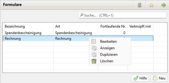 Mit Neu kann ein neues Formular eingerichtet werden.