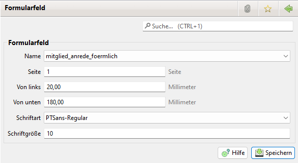 Seite auf der das Formularfeld platziert werden soll.