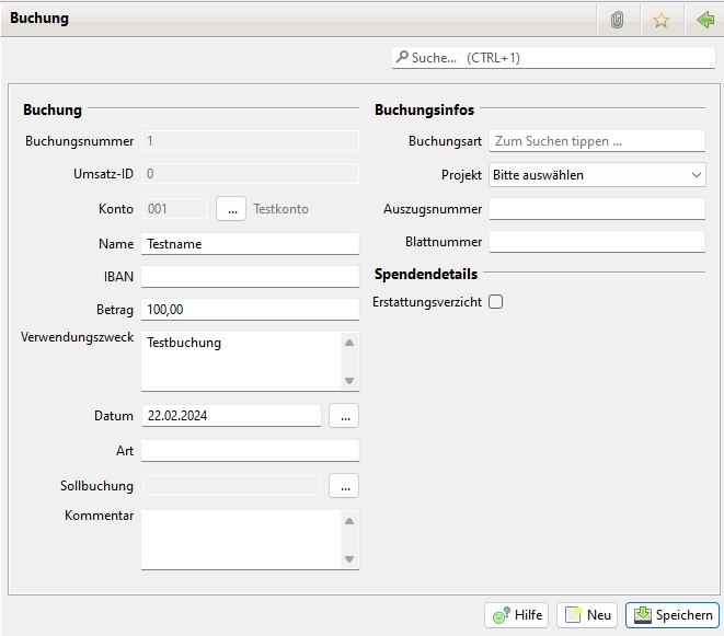 Bearbeiten: Öffnet die Detailansicht für die selektierte Buchung