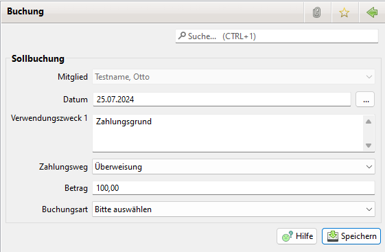 Über den Menüpunkt "Neue Sollbuchung" können neue Sollbuchungen aufgenommen werden.