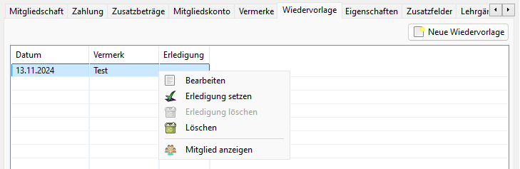 Anschließend sollte JVerein neu gestartet werden, damit der Tab "Wiedervorlagen" zur Verfügung steht.