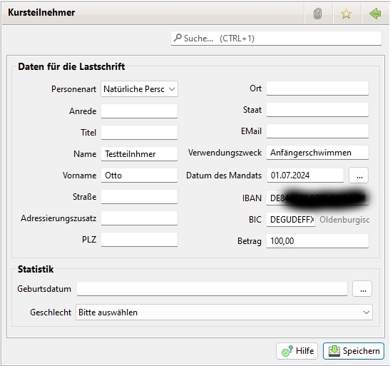 Mit dem Button Neu kann ein neuer Kursteilnehmer eingerichtet werden.