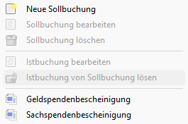 Ähnlich einer Sachspendenbescheinigungen kann eine Geldspendenbescheinigung manuell erzeugt werden: