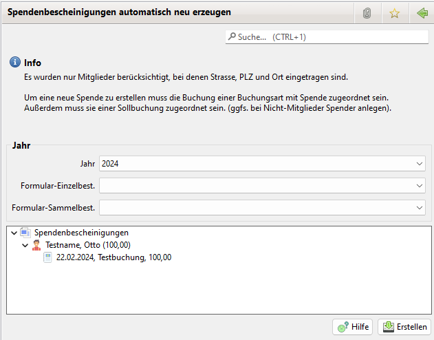 Über den Button Erstellen werden die Spendenbescheinigungen erzeugt.